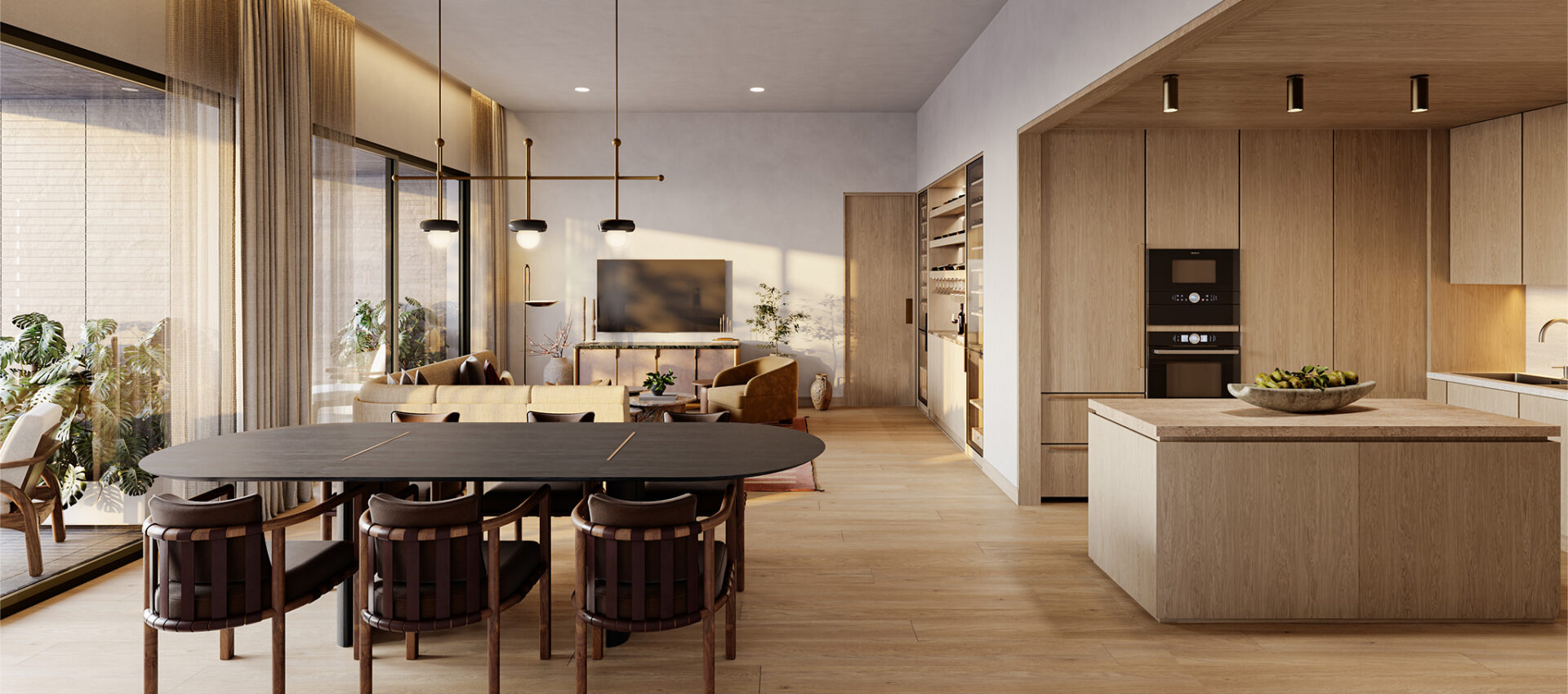 Defined by clean lines and a sophisticated material expression, the interiors are framed by nearly floor-to-ceiling windows that welcome Mexico City’s warm light and amplify a sense of openness throughout.
